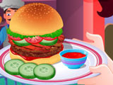 Empieza cortando los ingredientes, como el pepino y otros vegetales. Después, prepara la mezcla con carne molida, huevo, sal y especias. Forma las porciones de carne y fríelas en la sartén hasta que queden listas. Con las piezas aún calientes, arma la hamburguesa en el pan, agrega el queso y completa el sándwich siguiendo las indicaciones del juego.
