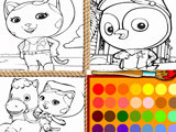 Coloring Sheriff Callie Scenes te pone frente a un cuaderno para colorear con tres láminas inspiradas en los dibujos animados de la sheriff Callie. Cada página muestra una escena con tus personajes favoritos: Luchik, Beaky y la propia sheriff del Lejano Oeste.