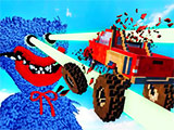 En cada fase embistes al coloso con toda la fuerza posible para alcanzar sus puntos débiles y derribarlo antes de quedarte sin intentos. Mantén pulsado el botón izquierdo del ratón y mueve el cursor de lado a lado para trazar la trayectoria del vehículo, tomar impulso y ajustar el salto desde la rampa. Tras cada victoria recibes monedas para mejorar tu máquina: incrementa su tamaño, consigue más oportunidades de impacto y multiplica las recompensas. Conforme progresas se abren nuevos vehículos especiales, como un camión blindado, un robot metálico gigante o un tanque futurista.