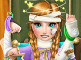 La princesa Anna paseaba con Sven por el parque cuando el reno se asustó y la lanzó sin querer a unos arbustos llenos de espinas. Terminó con muchos rasguños y heridas, así que ahora está en el hospital y necesita cuidados médicos. En Anna Hospital Recovery te conviertes en su doctora y te encargas de todo el tratamiento para que vuelva a estar bien.