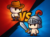 Dos jugadores se enfrentan uno contra uno en MergeDuel.io, cada uno con su propio campo lleno de cañones. Esos cañones disparan y generan tropas que avanzan para derribar la base rival, mientras el oponente intenta hacer lo mismo en su lado.