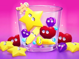 Las piezas caen desde la parte superior directamente al vaso. Eliges el punto de caída y apuntas para que se encuentren con otras del mismo tipo. Cuando dos iguales se tocan, se fusionan y aparece un caramelo nuevo de nivel superior, dejando un hueco para seguir lanzando y extender la cadena. Conforme avanza la partida, el recipiente se va llenando, así que conviene reservar zonas despejadas y agrupar colores y tamaños para generar fusiones rápidas. Si la montaña de gominolas alcanza la parte superior, la ronda termina y comienza otra. Encadenar combinaciones acertadas aumenta la cantidad de puntos, revela nuevas variedades de dulces y alarga el tiempo que mantienes el vaso bajo control.