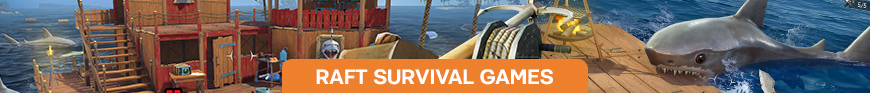En esta sección de juegos de supervivencia en balsa encuentras desafíos donde quedas a la deriva en medio del mar u océano y tienes que arreglártelas con lo que flota a tu alrededor. Si disfrutas los retos en solitario en un bosque o en una isla, aquí cambias los árboles por tablas y barriles que van pasando. Al principio solo cuentas con una pequeña plataforma de madera y un gancho; con eso recoges recursos y comida para seguir con vida.